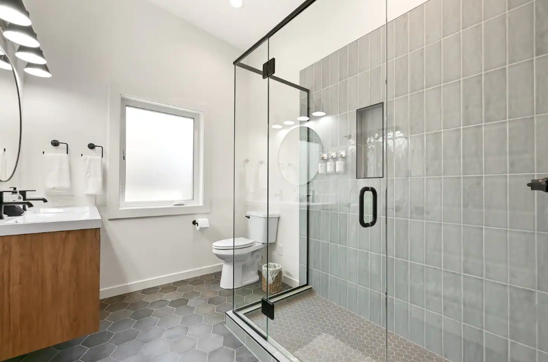 Touches like stained wood siding and custom refrigerator framing and custom tile showers make this home special, you can see for yourself and rent this AirBNB